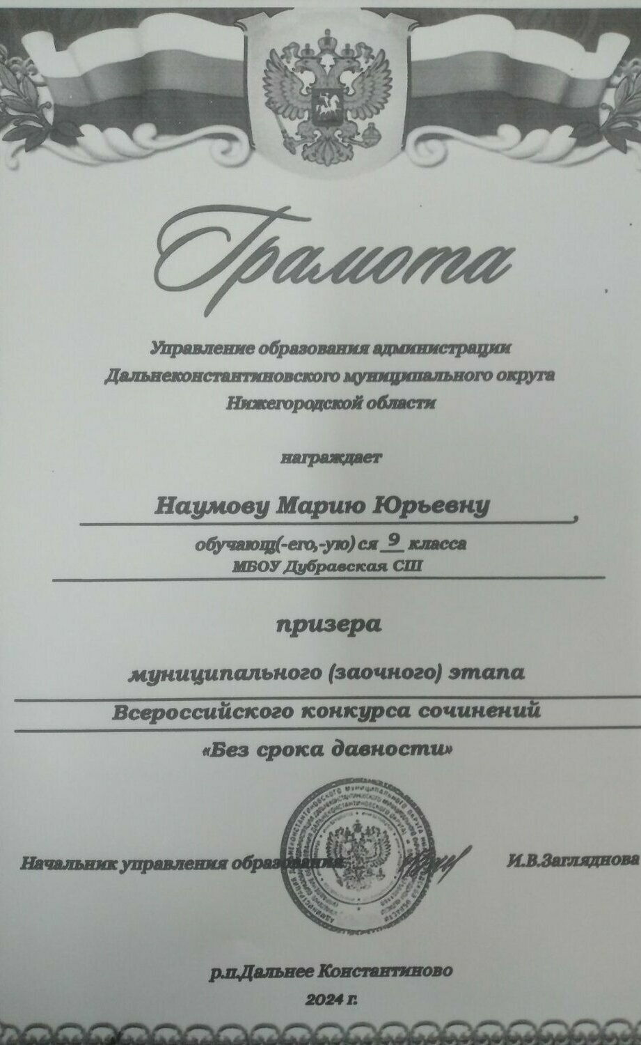 Эссе учащегося 5 класса, представленное на муниципальный этап Международного конкурса сочинений "Без срока давности" 2024/25 учебного года". Работа заняла призовое (второе) место