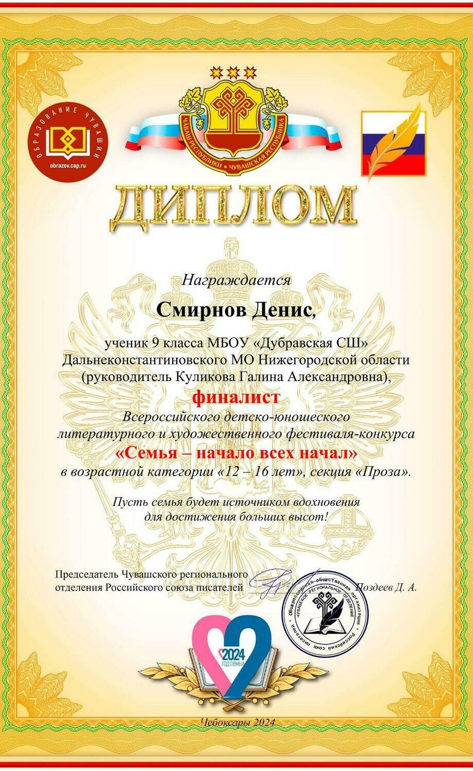 Работа на Всероссийский конкурс сочинений. Тематическое направление: __«Семья – это та первичная среда, где человек должен учиться творить добро» (В.А.Сухомлинский): 2024 – Год семьи