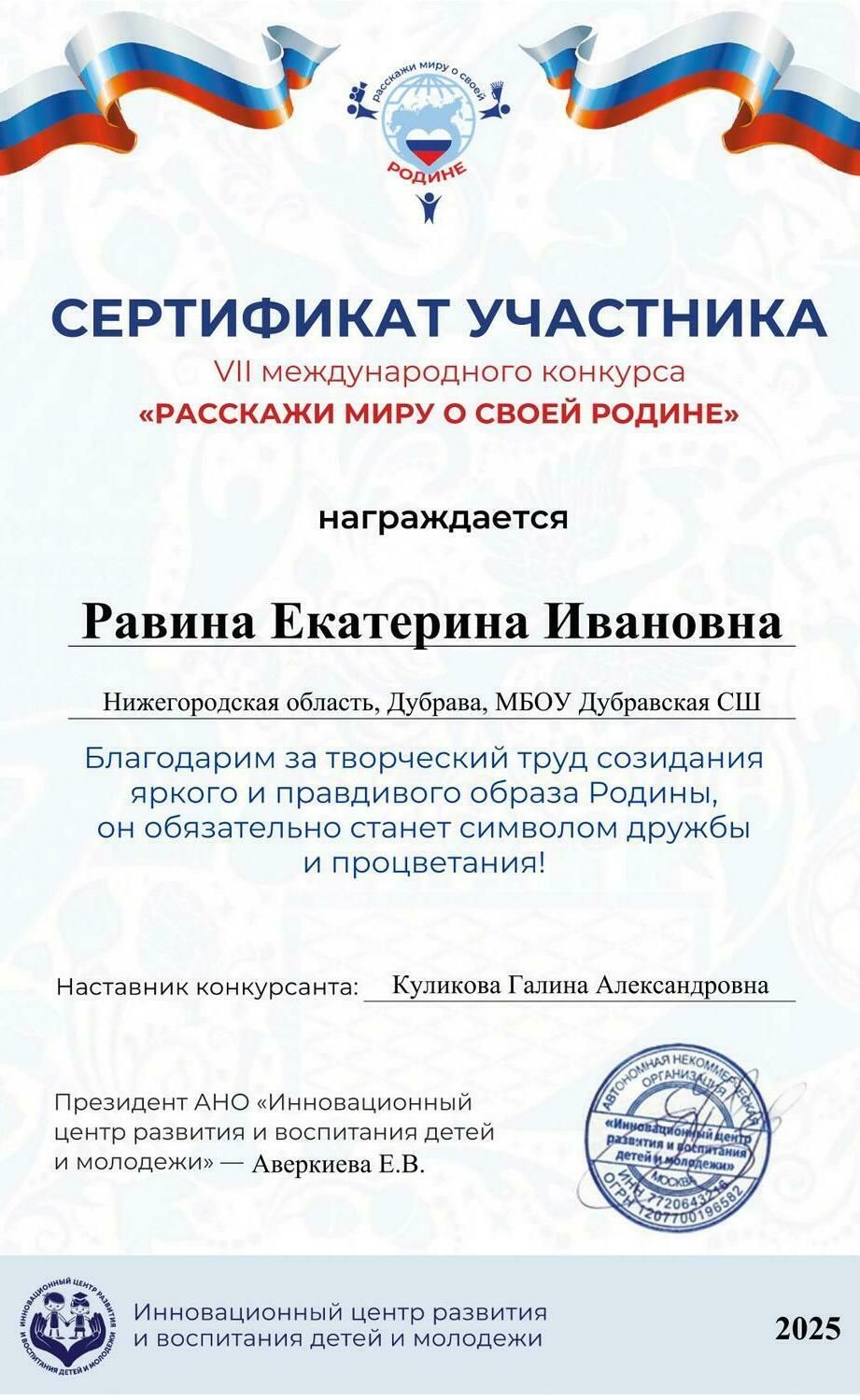 Работа на ХV Нижегородский областной конкурс творческих работ «Моя малая родина»